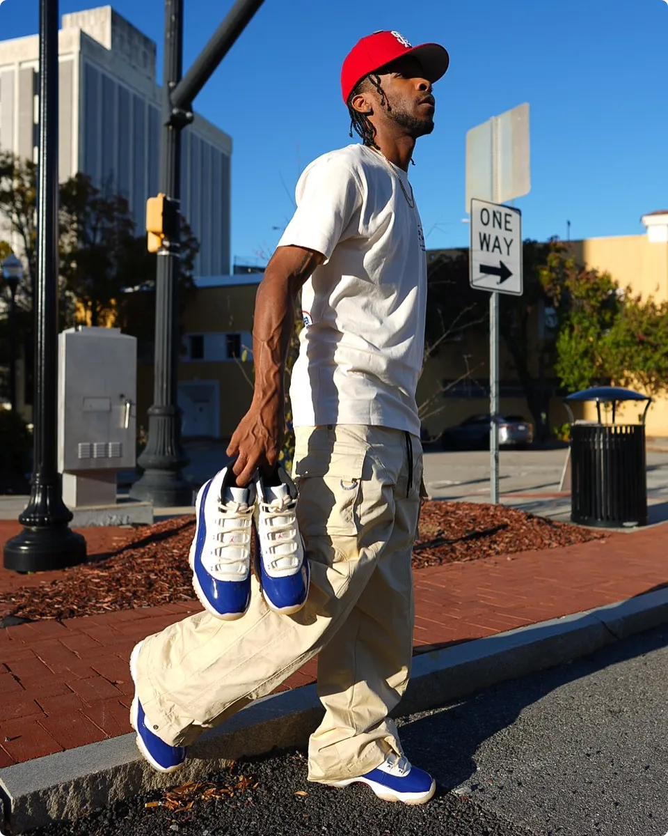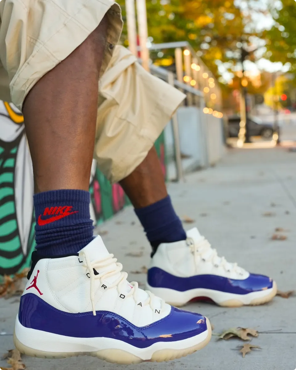 Forget the rest of the ‘Rare Air’ collection – the AJ11 is the real deal. From the buttery leather upper to the patent blue mudguard, this thing is pure heat. When you lace up, that scripted ‘JORDAN’ branding on the eyestays just tells everyone you know what’s up. This one’s the keeper. Seriously, you gotta ogle this masterpiece. It’s just built different.