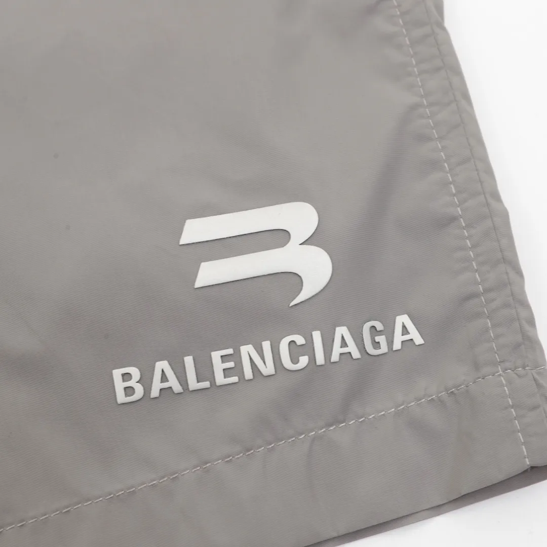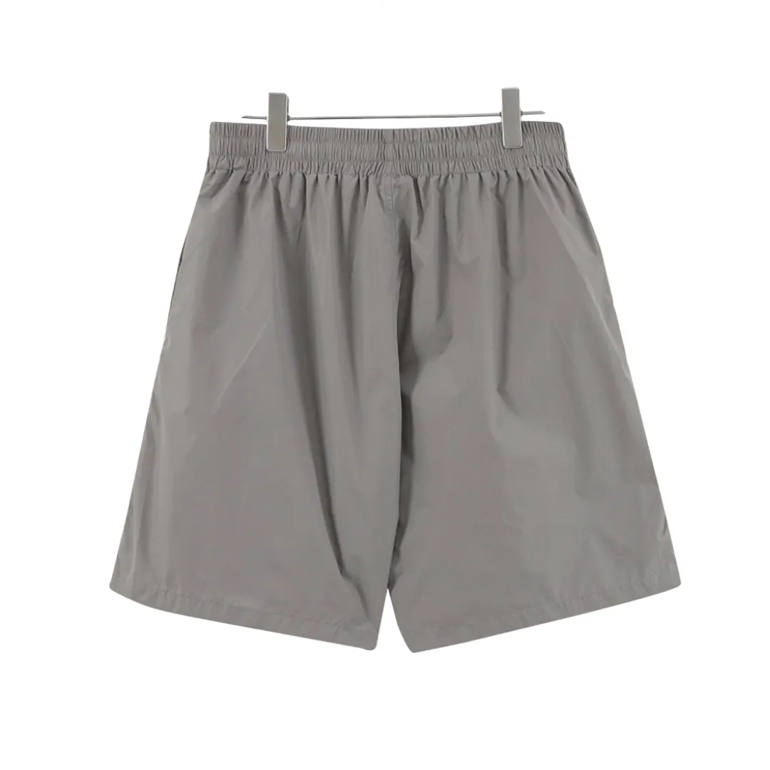 A sleek essential from BLCG, these grey nylon shorts showcase a minimalist design with a tonal BB emblem and Balenciaga logo printed near the hem. Lightweight and crisp, they’re crafted from quick-drying technical fabric, perfect for summer outings or city strolls. The relaxed fit and elastic waistband ensure all-day comfort while maintaining a refined, sporty look.