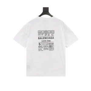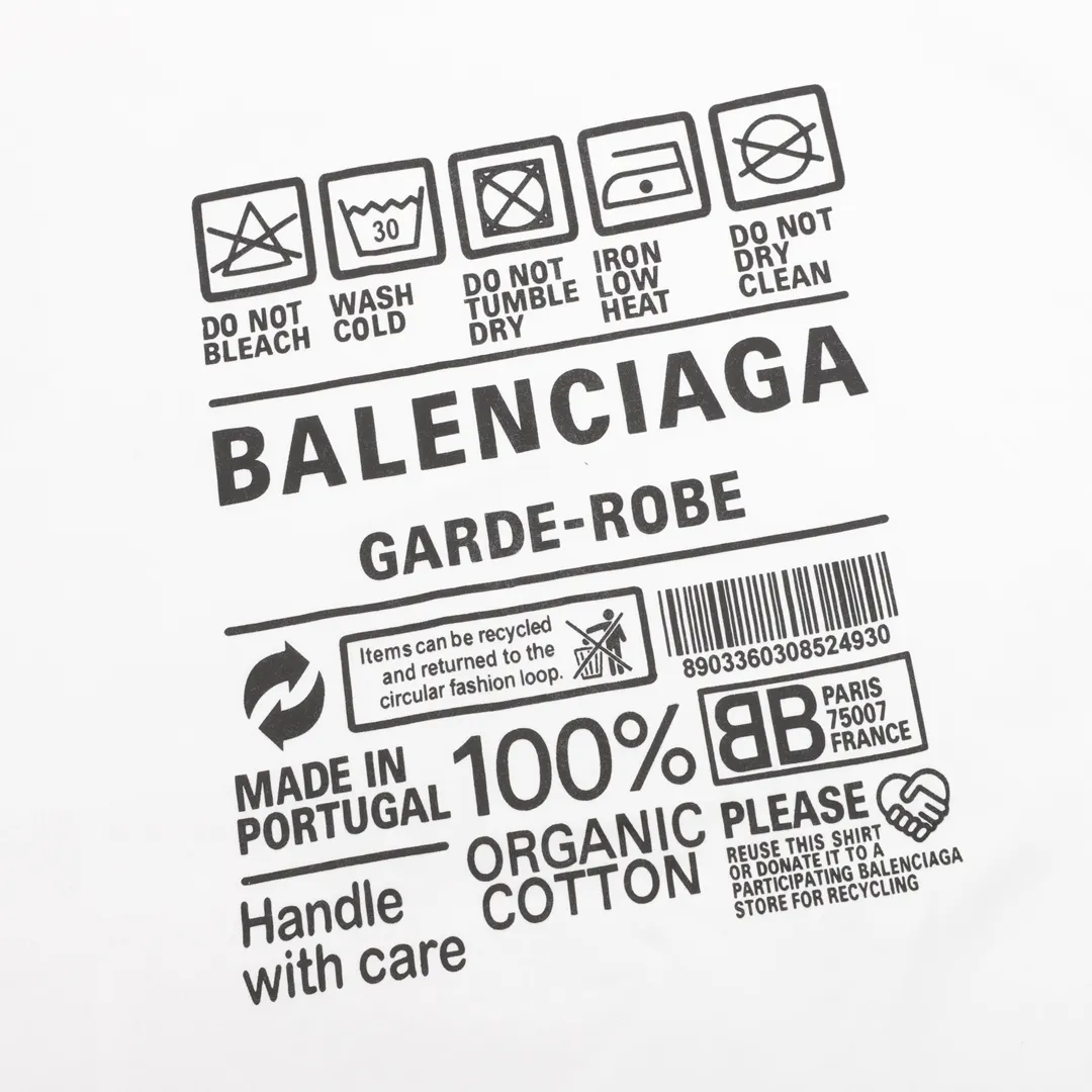 This white t-shirt from BLCG’s Garde-Robe line combines minimalist design with standout detailing. While the front remains clean, the back features a bold care label-style print complete with laundry icons, “GARDE-ROBE” text, and a message about 100% organic cotton. Crafted with a relaxed fit, crew neckline, and soft premium cotton, this piece blends sustainability messaging with modern streetwear flair.