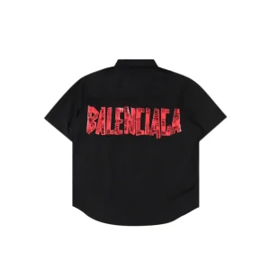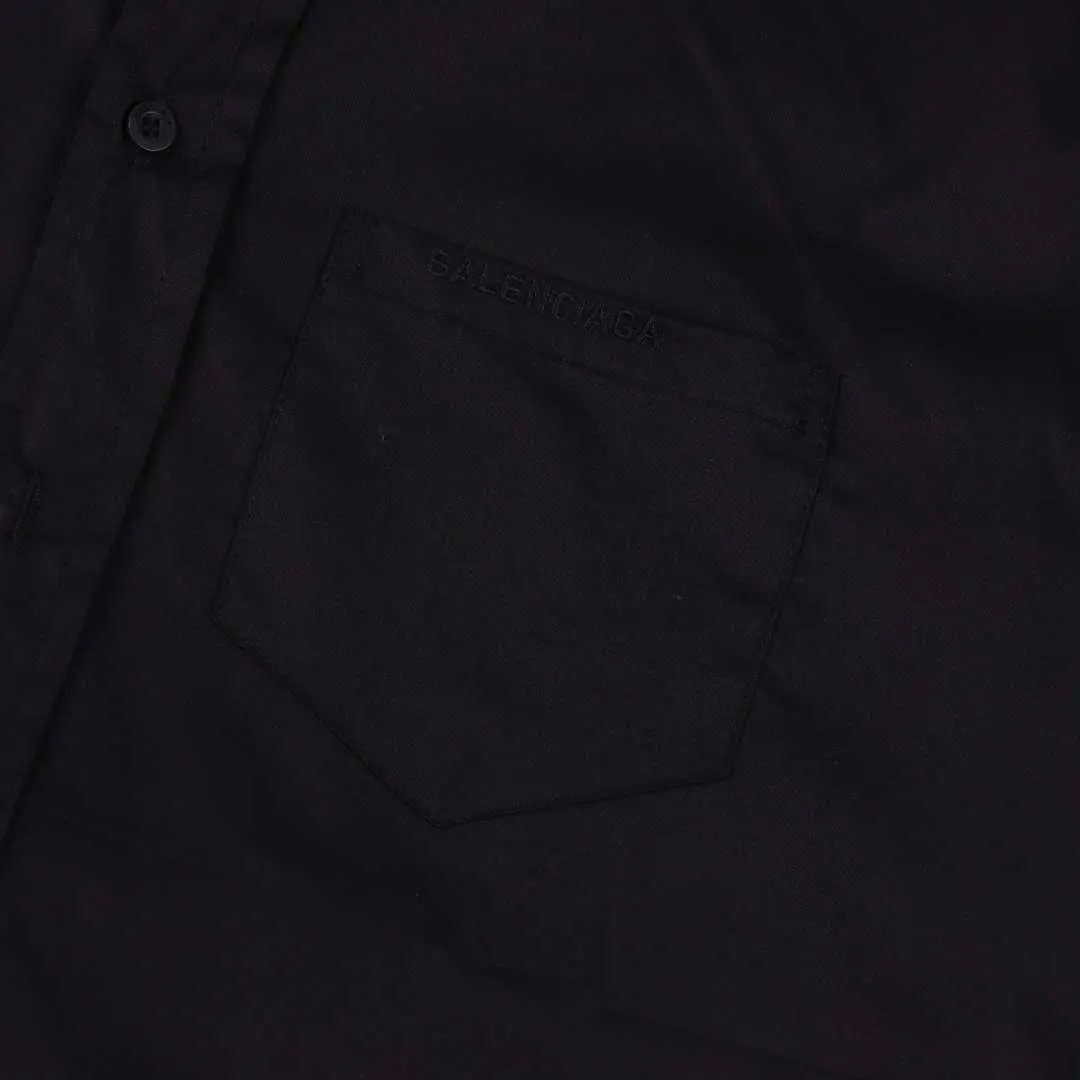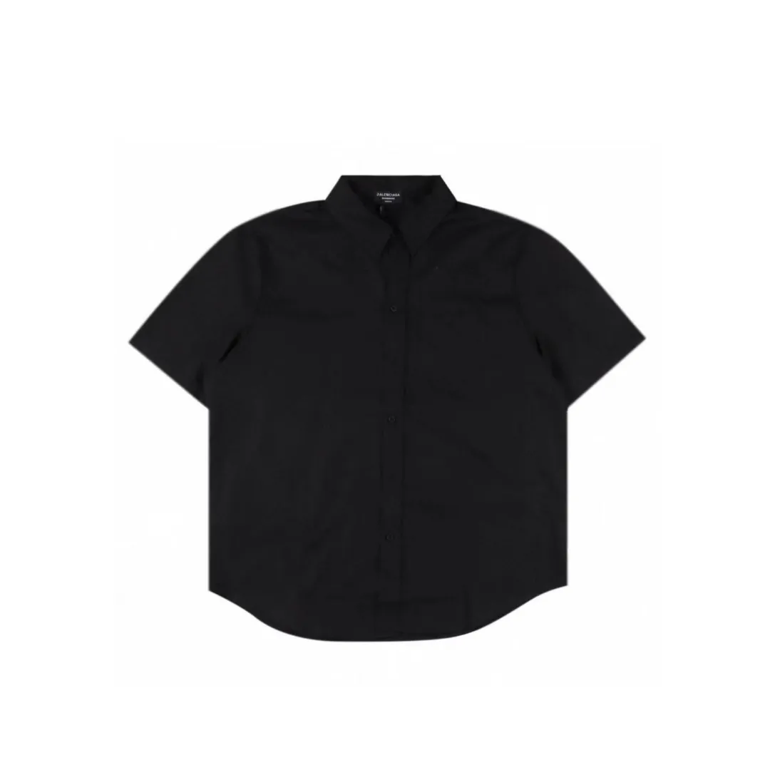 A modern streetwear essential from BLCG, this short-sleeve black shirt makes a strong statement with its oversized back logo rendered in a stencil-spray effect. The graphic evokes industrial edge and underground attitude, while the minimalist front and sharp collar keep things clean and structured. Crafted from crisp cotton poplin, it blends rebellious energy with refined tailoring ideal for bold everyday wear.