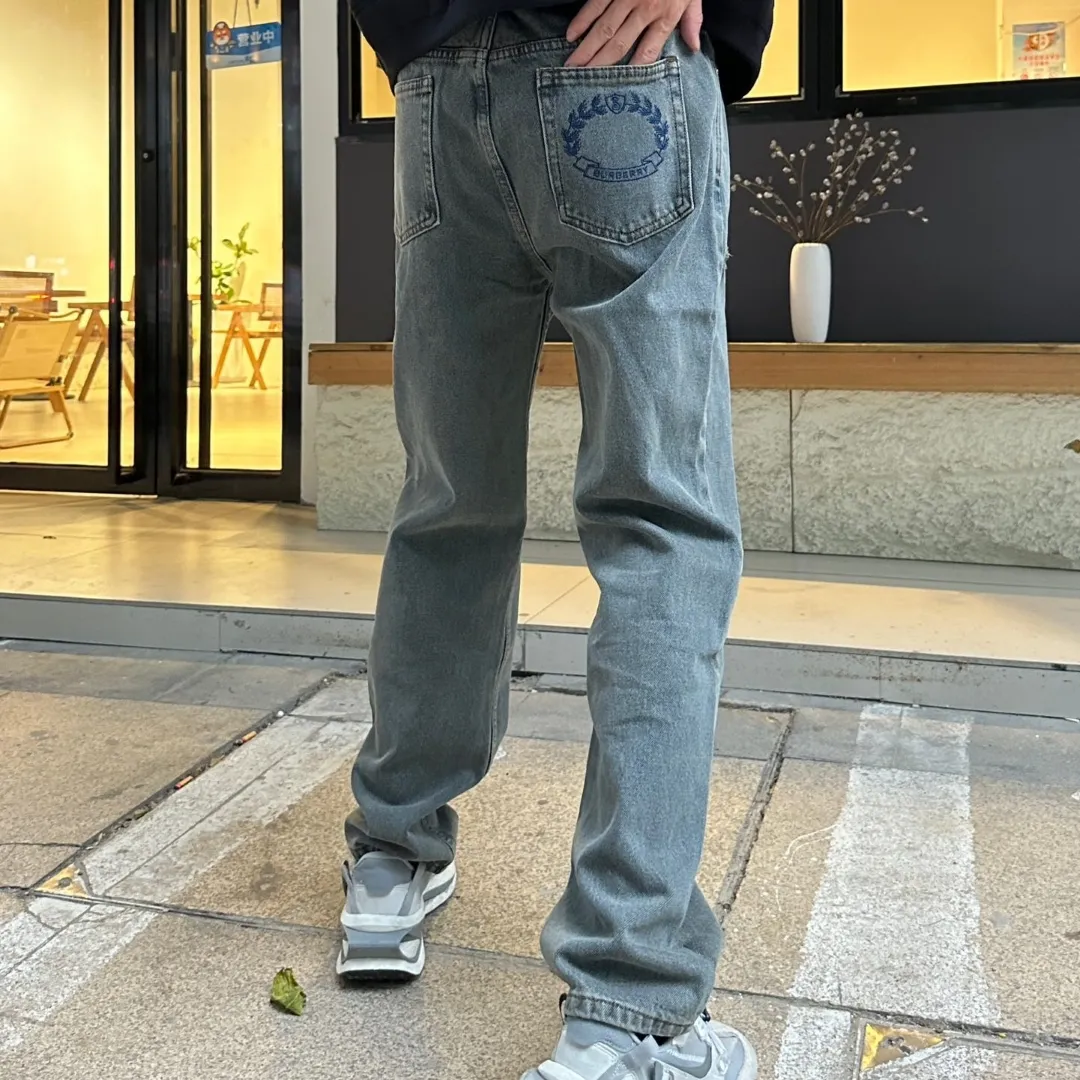 A refined blend of heritage and street sensibility, these Burberry jeans come in a vintage-washed grey finish that brings out a timeless edge. The minimalist front is complemented by a unique crest embroidery on the rear pocket, showcasing subtle branding in deep navy thread. Made with premium denim for all-day comfort and a straight-leg silhouette that flatters any fit, this pair balances casual wearability with elevated design.