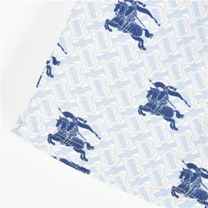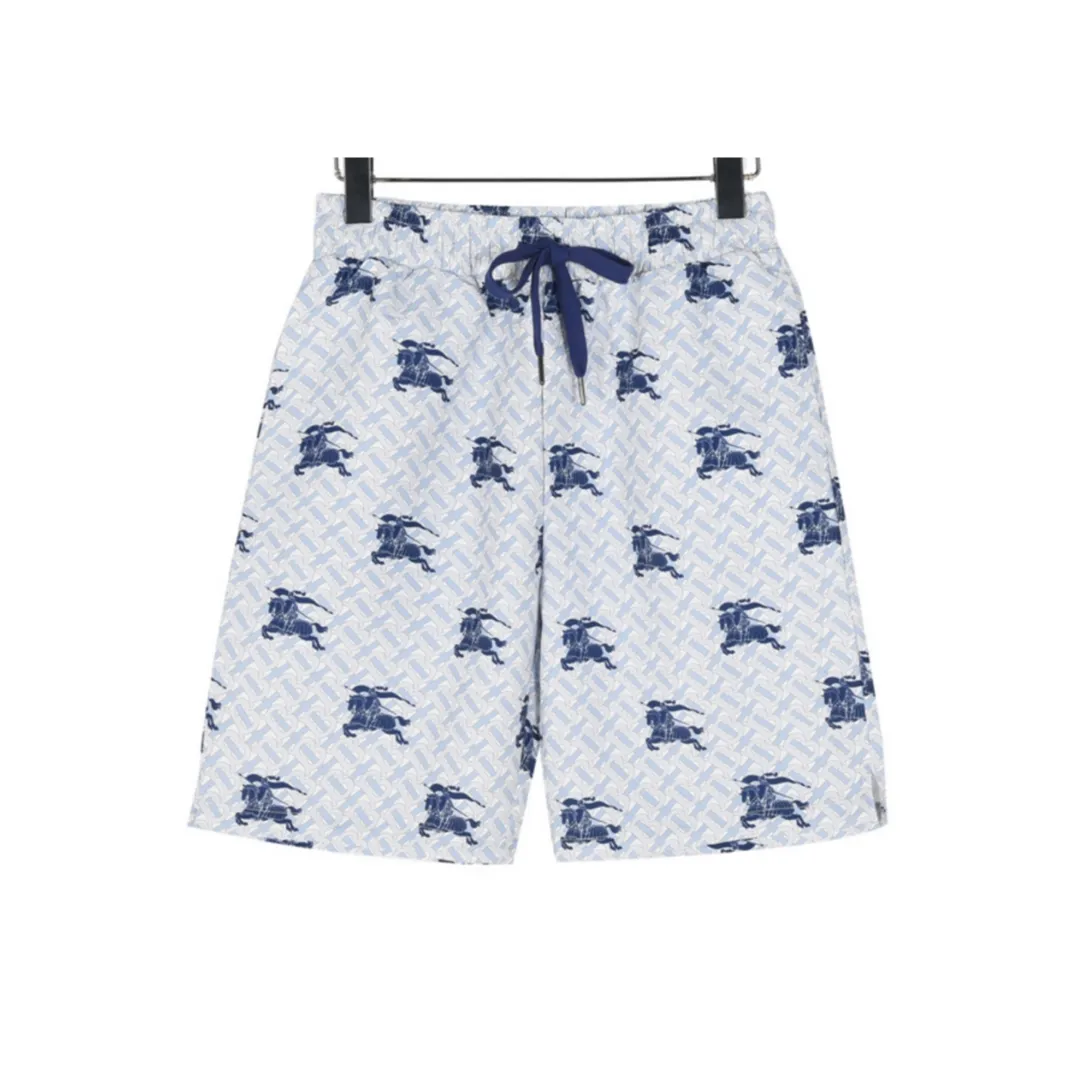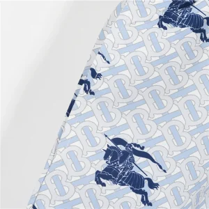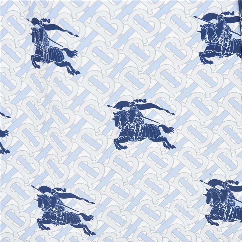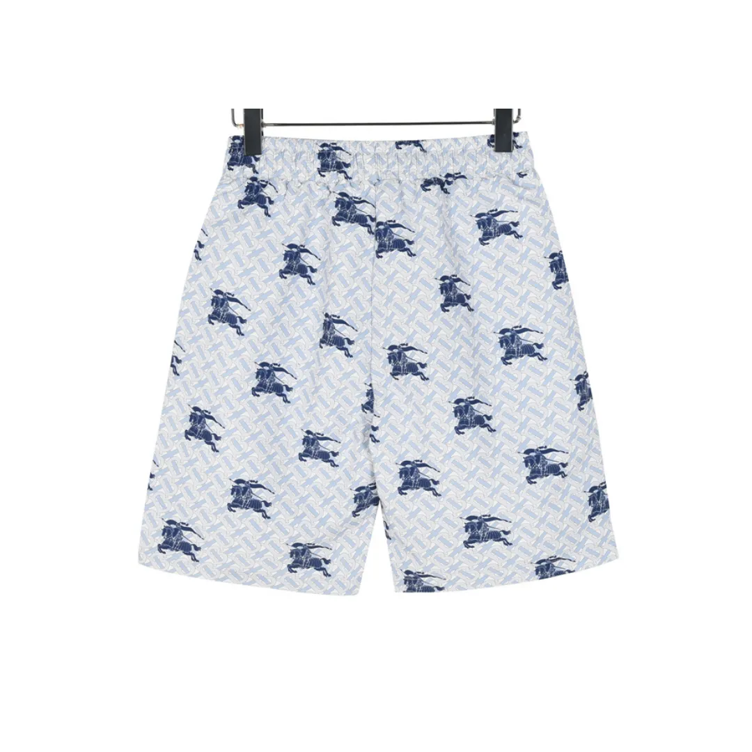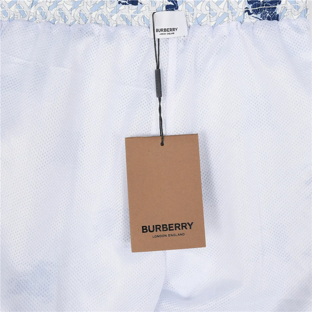 Bringing together a cool palette and heritage flair, these Burberry shorts showcase a repeating monogram base pattern overlaid with navy knight emblems. The ice-blue tone offers a crisp, refreshing summer aesthetic, while the adjustable navy drawcord ensures a secure and comfortable fit. Designed in lightweight, quick-dry material, these shorts combine timeless luxury with functional beach-ready appeal.