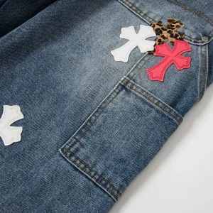 Description: Each pair of Chrome Hearts jeans is a work of art steeped in a gritty, high-fashion aesthetic. With iconic details like custom crosses and unique leather patches, these jeans are a statement of fearless individuality and raw attitude. Whether you pair them with a simple tee or a bold jacket, these jeans will be the perfect finishing touch, helping you dominate the street style scene and capture every eye.
