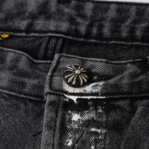 Description: Each pair of Chrome Hearts jeans is a work of art steeped in a gritty, high-fashion aesthetic. With iconic details like custom crosses and unique leather patches, these jeans are a statement of fearless individuality and raw attitude. Whether you pair them with a simple tee or a bold jacket, these jeans will be the perfect finishing touch, helping you dominate the street style scene and capture every eye.