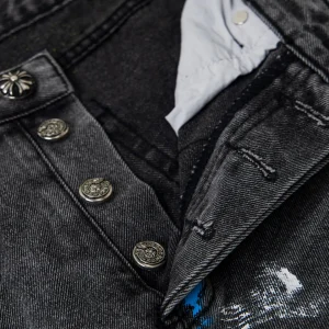 Description: Each pair of Chrome Hearts jeans is a work of art steeped in a gritty, high-fashion aesthetic. With iconic details like custom crosses and unique leather patches, these jeans are a statement of fearless individuality and raw attitude. Whether you pair them with a simple tee or a bold jacket, these jeans will be the perfect finishing touch, helping you dominate the street style scene and capture every eye.