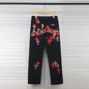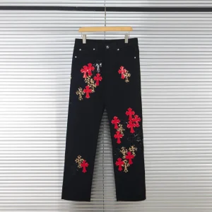 Description: Each pair of Chrome Hearts jeans is a work of art steeped in a gritty, high-fashion aesthetic. With iconic details like custom crosses and unique leather patches, these jeans are a statement of fearless individuality and raw attitude. Whether you pair them with a simple tee or a bold jacket, these jeans will be the perfect finishing touch, helping you dominate the street style scene and capture every eye.