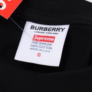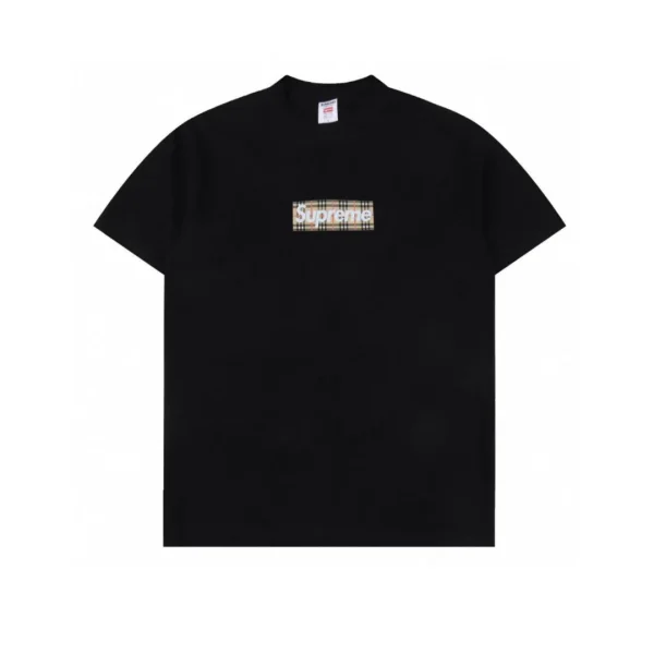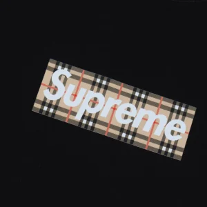A standout from the SUP x BUR collaboration, this black tee reinterprets the iconic box logo with Burberry’s classic vintage check pattern. It’s a bold fusion of high fashion heritage and streetwear edge, set against a sleek black canvas. Crafted in soft cotton with a relaxed silhouette, this tee is a must-have for collectors and style enthusiasts who appreciate luxury redefined through urban culture.